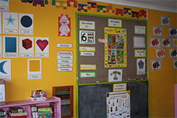 In all the classes, the children are encouraged to expand their vocabulary and fluency by talking and listening, and by hearing and responding to stories, songs and rhymes. Children are helped to understand that written symbols carry meaning, to be aware of the purposes of writing and, when they are ready, to use drawn and written symbols for themselvesThe Grade R group is introduced to phonics, basic reading and Letterland, which is used in most Grade 1 classes in Primary Schools, this helps them to hear sounds and recognise letters.